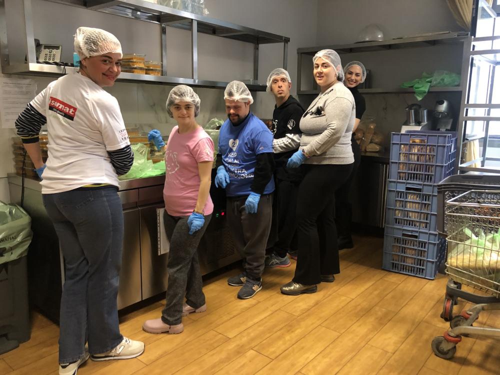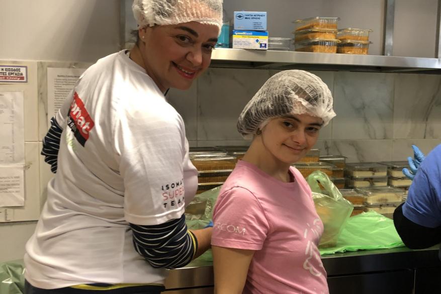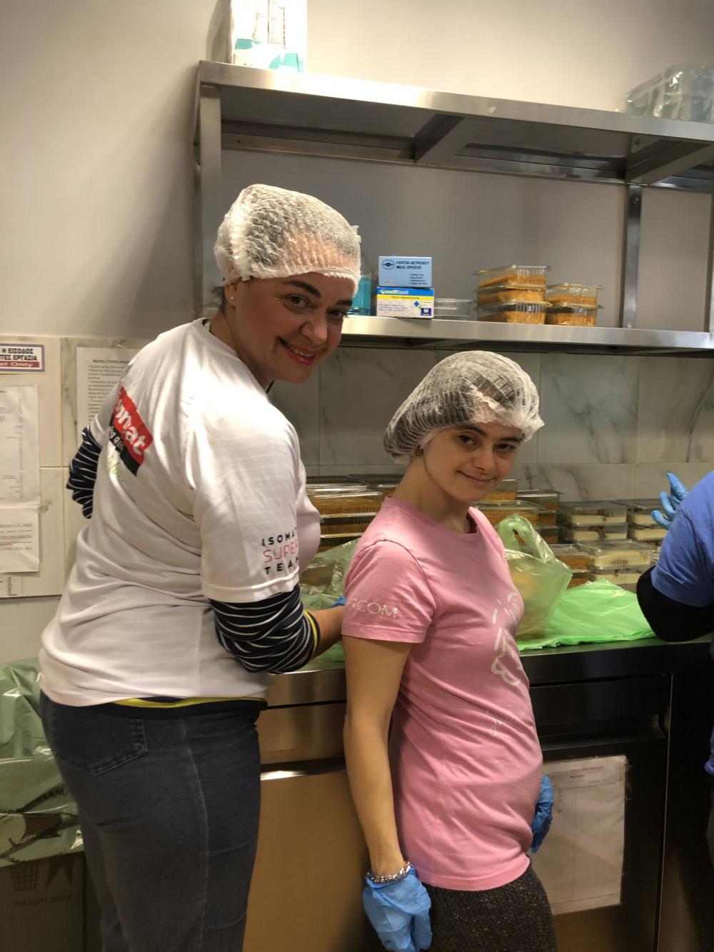 Έτσι, στο πλαίσιο της ευαισθητοποίησης για την Παγκόσμια Ημέρα Συνδρόμου Down μέλη της ομάδας εθελοντισμού της εταιρείας Isomat,εργαζόμενοι του Δήμου Καλαμαριά με τη βοήθεια της αεικίνητης Α/δημάρχου Κοιν. Πολιτικής, Δημόσιας Υγείας, Αλληλεγγύης και Ισότητας των δύο Φύλων, κας Eva Ntonti , νέοι και νέες από το Σύλλογό μας, ετοίμασαν τα γεύματα για τους δημότες που στηρίζει το Κοινωνικό Παντοπωλείο.
