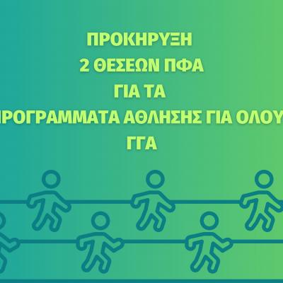 Ο Σύλλογος Συνδρόμου Down Ελλάδος προκηρύσσει την πρόσληψη προσωπικού με σύμβαση εργασίας ιδιωτικού δικαίου ορισμένου χρόνου, συνολικού αριθμού τριών (3) Πτυχιούχων Φυσικής Αγωγής (ΠΦΑ) για την κάλυψη παροδικών αναγκών χρονικής διάρκειας έως οκτώ(8) μηνών με ωριαία αποζημίωση για τη διεξαγωγή προγραμμάτων «Άθληση για Όλους 2025-2026 της ΓΓΑ».