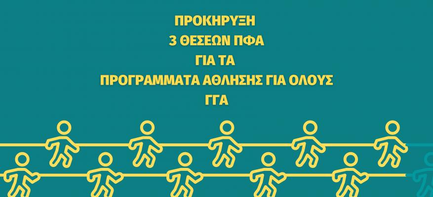 Ο Σύλλογος Συνδρόμου Down Ελλάδος προκηρύσσει την πρόσληψη προσωπικού με σύμβαση εργασίας ιδιωτικού δικαίου ορισμένου χρόνου, συνολικού αριθμού τριών (3) ατόμων για την κάλυψη παροδικών αναγκών χρονικής διάρκειας έως οκτώ (8) μηνών με ωριαία αποζημίωση για τη διεξαγωγή προγραμμάτων «Άθληση για Όλ