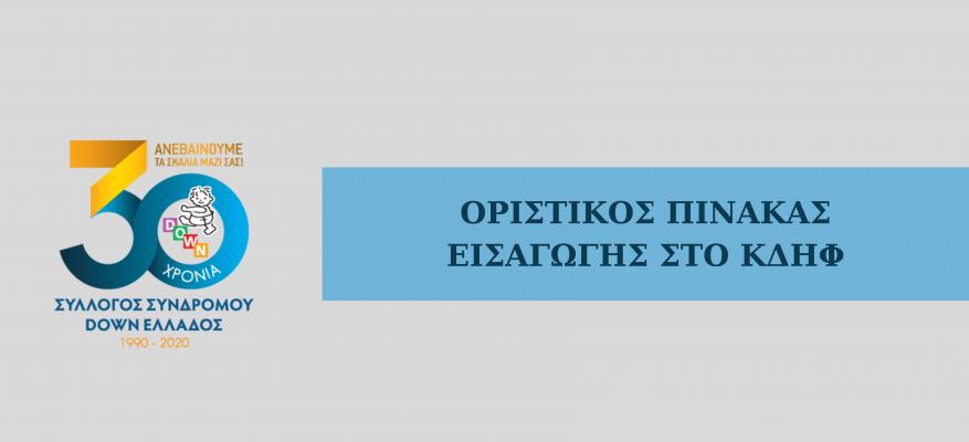 ΟΡΙΣΤΙΚΟΣ ΠΙΝΑΚΑΣ ΚΑΤΑΤΑΞΗΣ